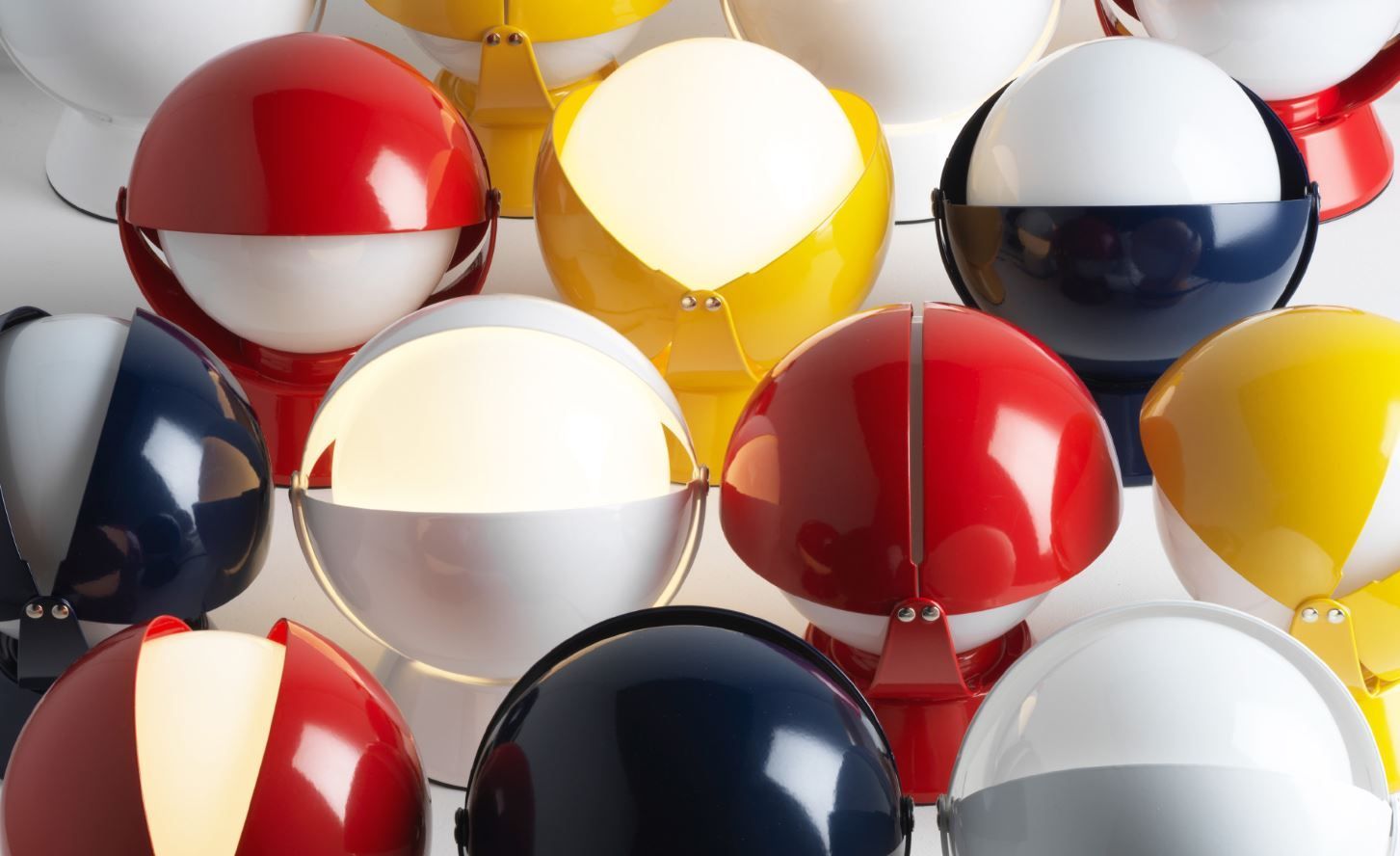 Corpo in metallo verniciato nelle finiture bianco, giallo, rosso, blu. Diffusore in vetro duplex, lampadina LED 5W 2700K E14 inclusa.