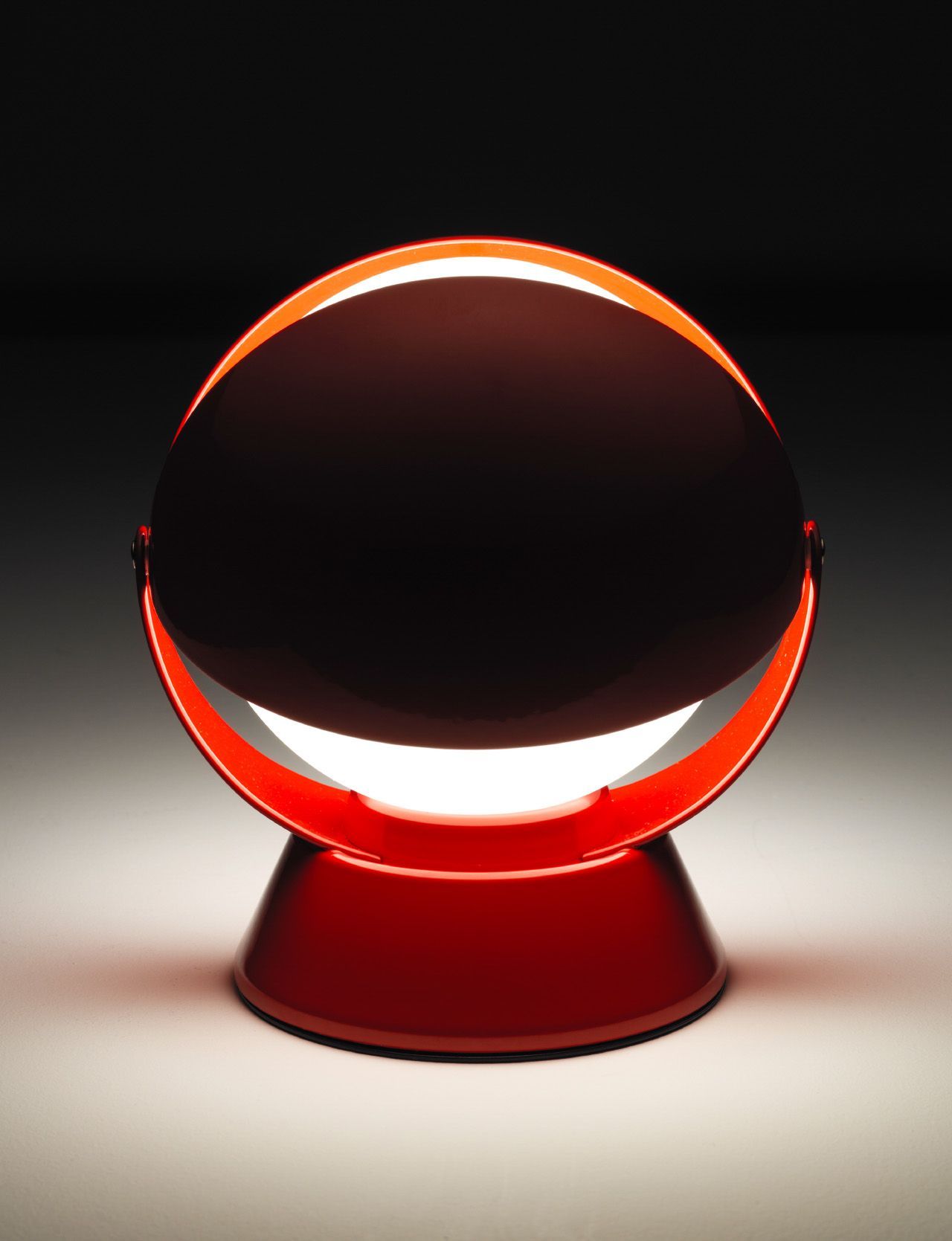 Buonanotte è una divertente lampada regolabile mediante la rotazione di due quartine in metallo che, mosse liberamente sopra il diffusore sferico, ne controllano il fascio luminoso. Con un semplice gesto cambia l’atmosfera: aperta per una buona lettura o chiusa e soffusa, complice dei sogni.